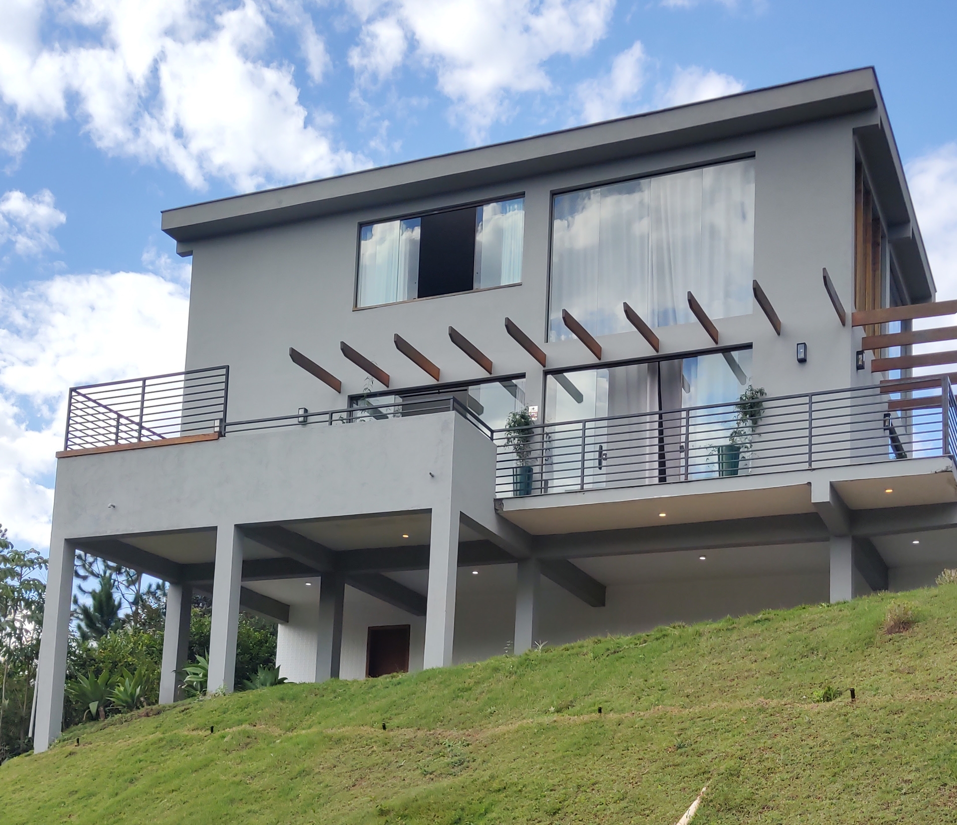 A vista permanente para as montanhas transforma cada amanhecer em um convite para desacelerar. A área externa é generosa, com quintal amplo e cercado, garantindo privacidade e segurança. A jacuzzi posicionada para contemplar a paisagem cria o cenário ideal para momentos de descanso ao fim do dia.