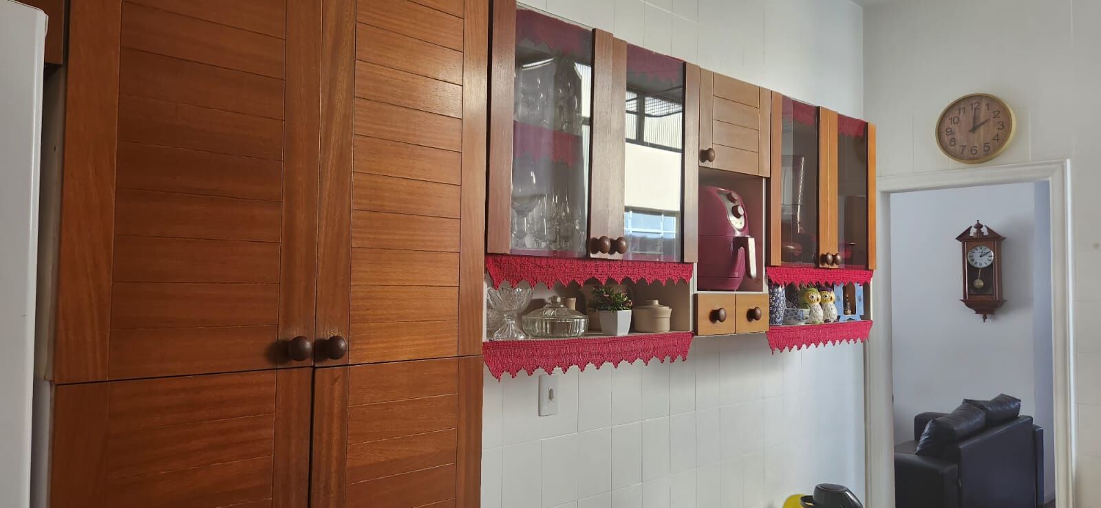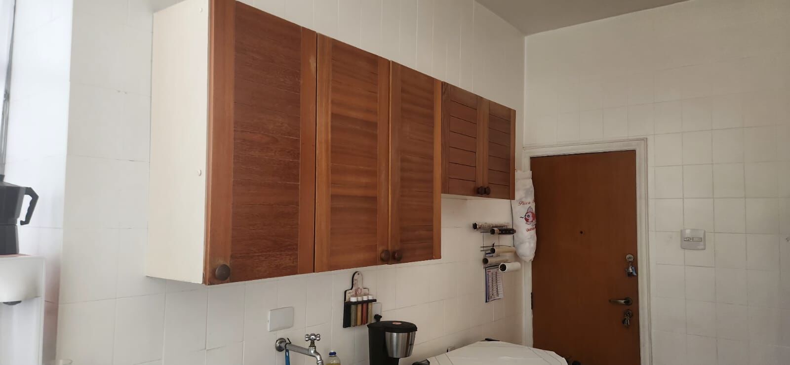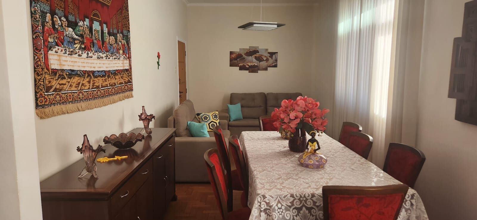 Apartamento com piso em taco de madeira Ipê, teto com rebaixamento em gesso.