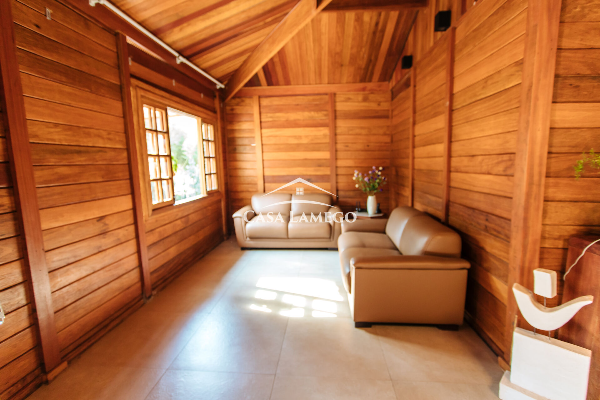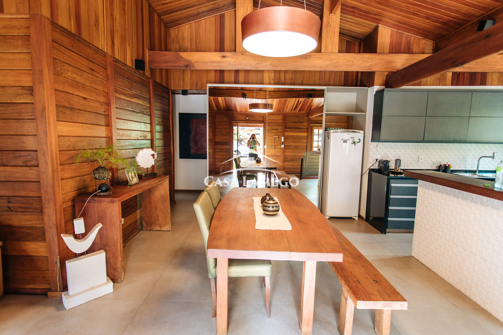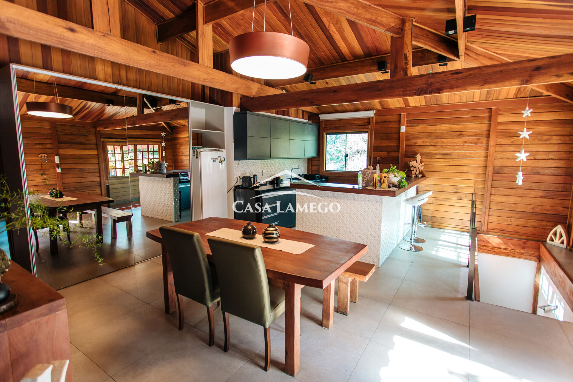 Imóvel construído com mix de alvenaria, madeira e vidros temperados, 02 (dois) pavimentos, 04 (quatro) quartos, cozinha tipo americana com bancadas em granito e acabamentos em alta qualidade, escritório, grande sala de TV com varanda gourmet com bancada granito com fogão cooktop, churrasqueira, linda vista para a mata.